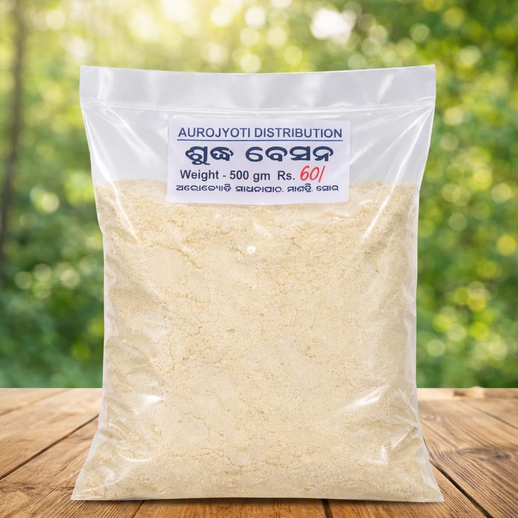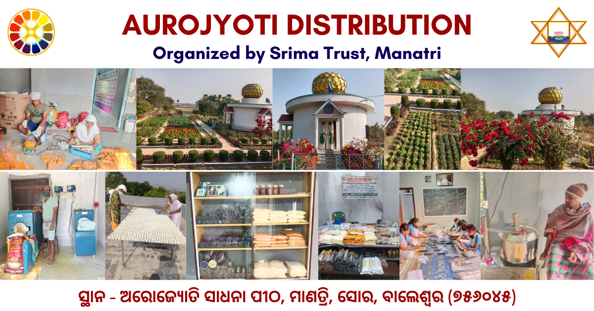 Through this initiative, the Apas and Bhais engaged in sadhana at the Ashram are becoming self-reliant, while also making an effort to ensure that pure food items reach all the Mother’s children. Aurojyoti Sadhana Peetha, Mantri, continues to silently pray to the Divine Mother and the Supreme Lord Sri Aurobindo, holding the aspiration to open more departments in the future. At present, the Ashram provides handmade pure turmeric, besan, roasted gram flour, badi, cumin powder, coriander powder, pickles, various types of laddus, and also items from the Pondicherry Ashram such as books, photographs, lockets of Sri Ma and Sri Aurobindo, incense, attar (fragrance), silver lockets, and grocery items.